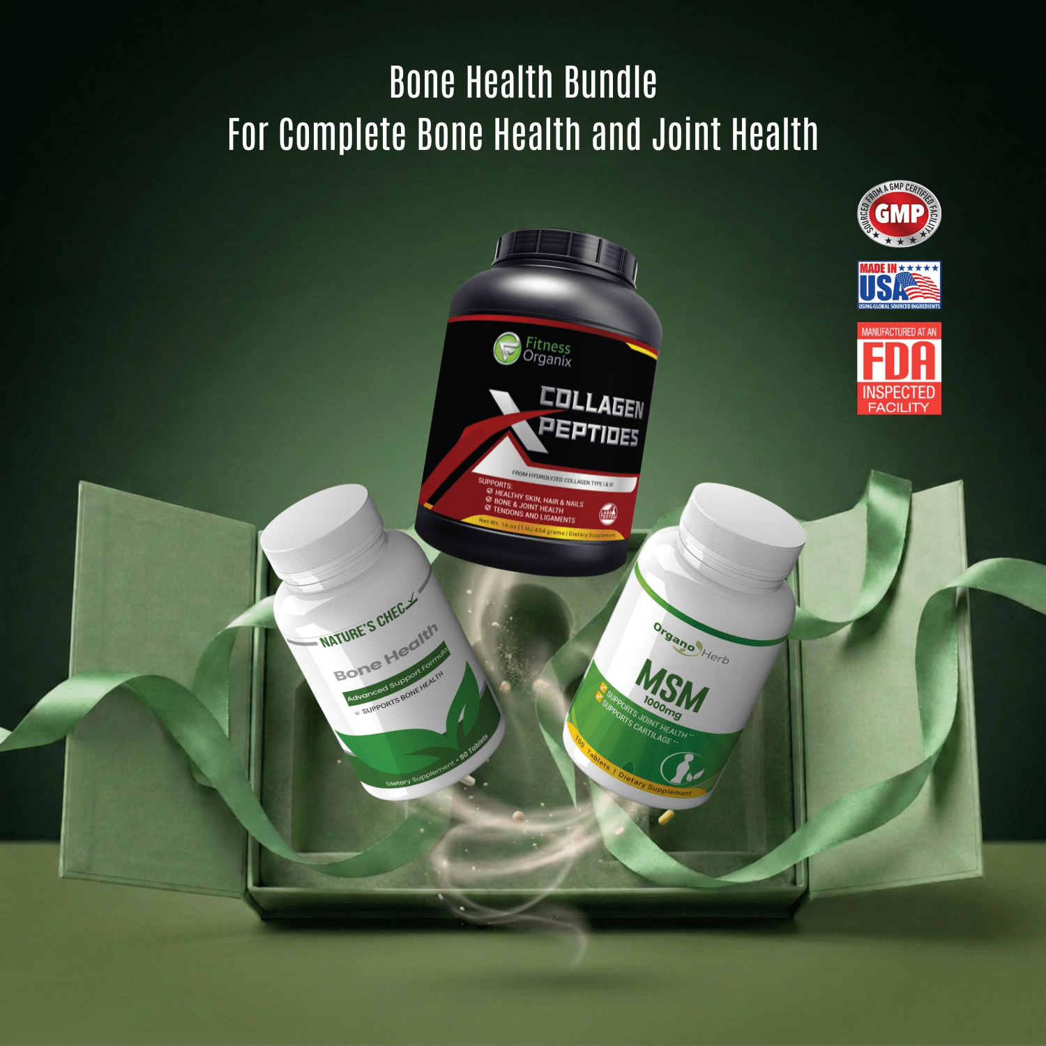 A premium three‑part bundle promoting bone strength, joint comfort, and overal