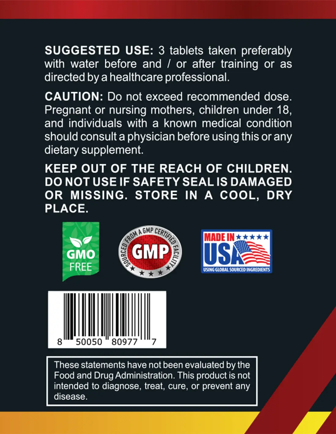 Take 3 tablets daily with water, preferably before or after training.