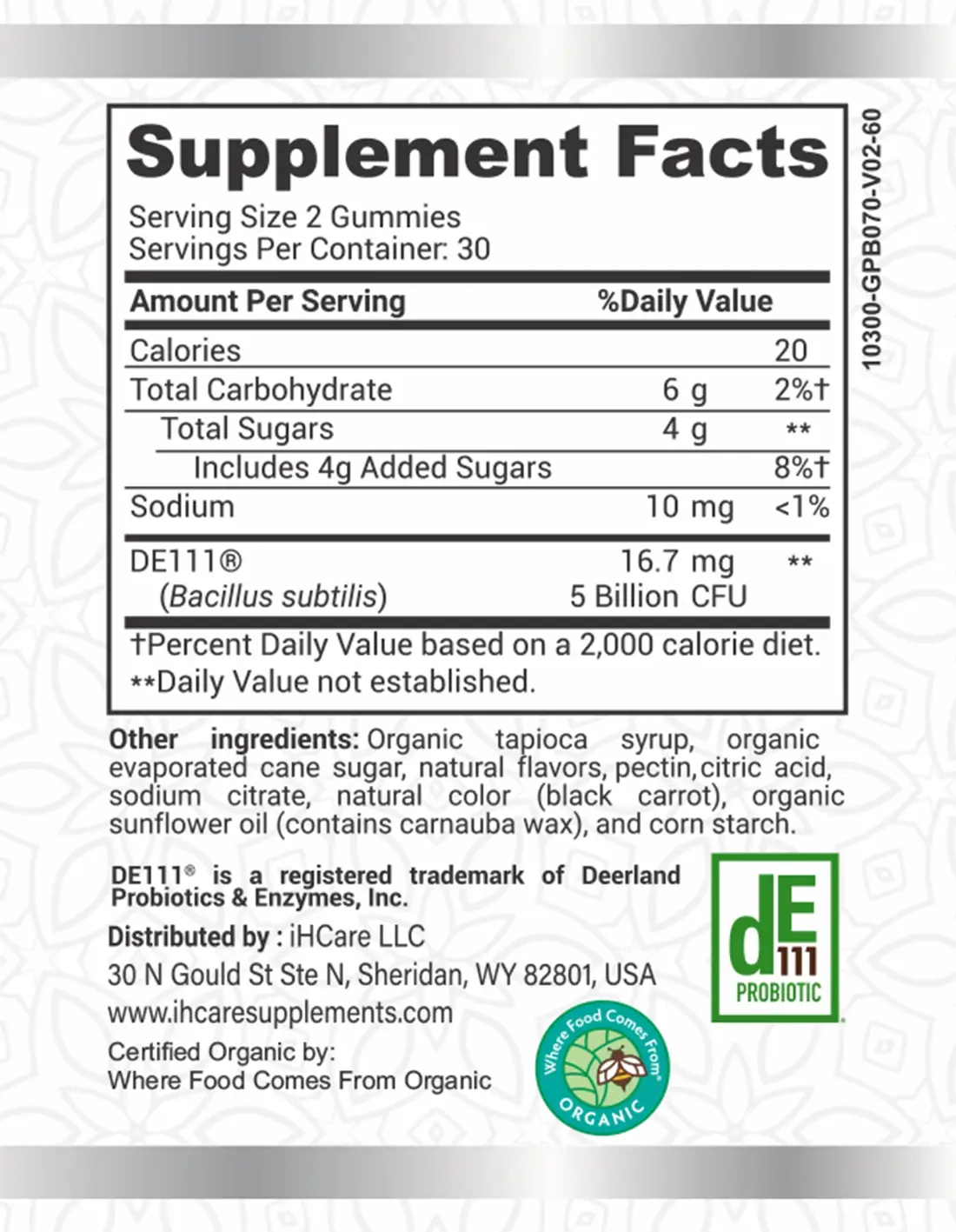 - Clean, Certified Organic Formula: No synthetic additives — only carefully sourced plant and fermentation‑based ingredients.